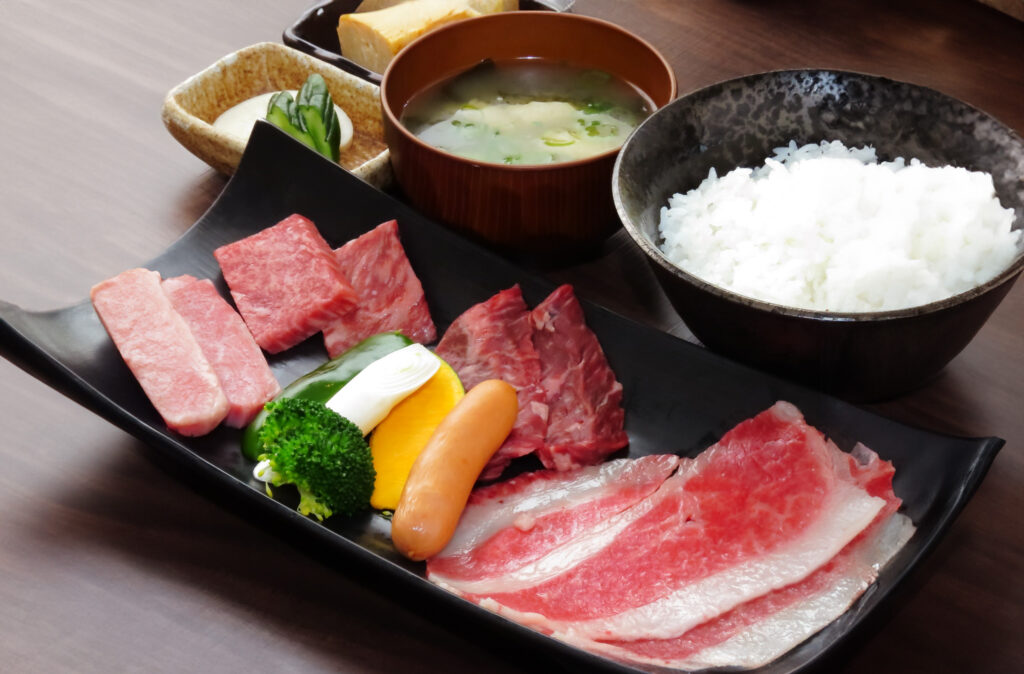 当店では、14時までランチタイムを実施。人気の塩コウネ定食をはじめ、牛タンや上ハラミなど厳選した部位を盛り合わせた定食もご用意しています。ご飯、みそ汁、漬物、一品が付くセットで、リーズナブルながら満足度の高い焼肉ランチをお楽しみいただけます。特に、塩コウネや名物のもつ煮定食は、多くのお客様から支持されている美味しさ。